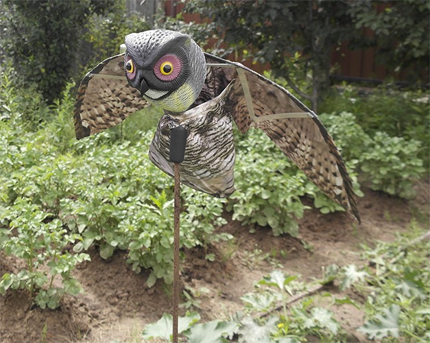 Визуальный отпугиватель птиц "Филин" очень похож на свой живой прототип, поэтому вызывает инстинктивный страх у птиц, являющихся добычей этого хищника. Он распугает всех птиц-вредителей на вашей территории (сад, огород, дача, склад, фермерское угодье и т.д.) и защитит урожай. Устанавливается на шест (в комплект не входит).