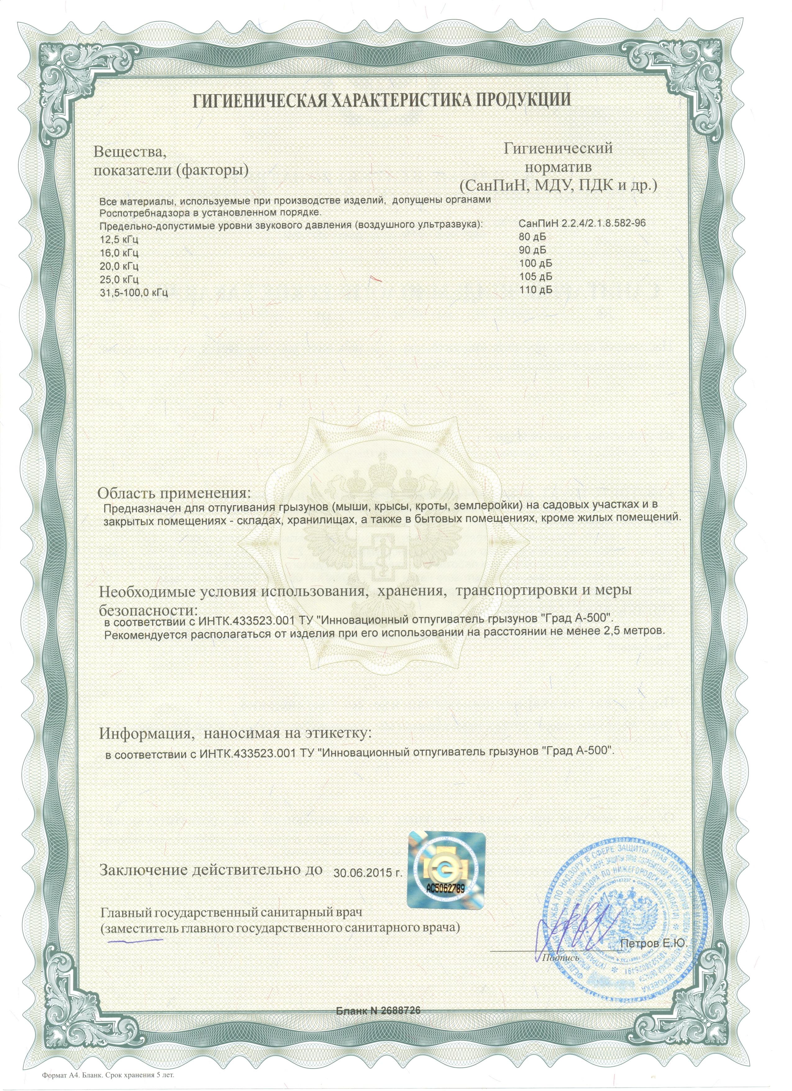 Отпугиватель грызунов и кротов «Град А-500» разработан и произведен в России. В процессе изготовления продукции использовалась комплексная 5-ти ступенчатая система для контроля качества, что является гарантией соответствия заявленным производителем техническим характеристикам.